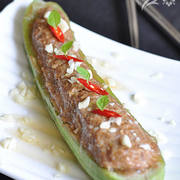 丝瓜、猪肉馅、葱、姜、生抽、花雕酒、白胡椒粉、盐、淀粉。