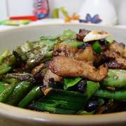 腊肉、杏鲍菇、葱、蒜、青红椒、盐、蚝油。