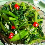 空心菜、大蒜、姜、红辣椒、植物油、盐、生抽、香醋。
