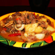 牛肉、土豆、口蘑、洋葱、培根、红酒、番茄酱、辣椒、黑胡椒碎、香料、西芹、胡萝卜、番茄、香叶、黑胡椒粉。