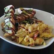 鸡蛋、虾仁、蟹肉、牛油果、面包、葱花、面粉、橄榄油、海盐、黑胡椒、咖喱粉、烧烤酱。