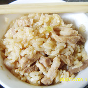 大米、猪肉、盐、葱花、李锦记老抽、鸡精、料酒、蚝油。