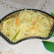 土豆、青椒、胡萝卜、盐、蒜、鸡精、辣椒油、香油。