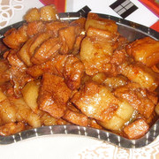 带皮五花肉、葱、姜、料酒、糖、盐、老抽、大料。