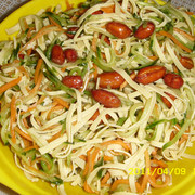黄瓜、豆腐皮、胡萝卜、油炸花生米、盐、橄榄油、辣椒油、鸡精、味极鲜、米醋、蒜。