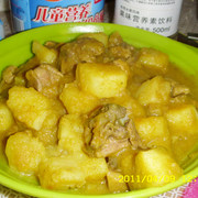 鸡腿、土豆、咖喱、盐、料酒、葱花。