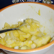 鸡蛋黄、橄榄油、苹果醋、白糖、盐 。