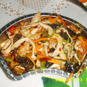 猪里脊肉、木耳、青椒、胡萝卜、红椒。