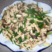 豆腐皮、韭菜、香菇、洋葱、猪肉、生抽、盐、糖、料酒、鸡精。