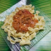 意面、西红柿、洋葱、沙丁鱼罐头、蒜瓣儿、色拉油、盐、胡椒。