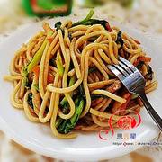桂粉、瘦肉丝、胡萝卜丝、菜心、蒜沫、生抽、老抽、油盐。