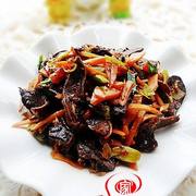腊猪肝、酸胡萝卜、姜丝、辣苗、干辣椒粉、油盐、料酒。