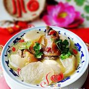 腊猪手、白萝卜、鸡蛋、葱白、香草、八角、桔子皮。