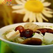 豆腐、香茹、大骨头汤、鱼丝、姜丝、香葱、盐。