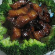 红烧肉、西兰花。