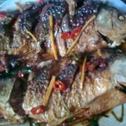鲫鱼、尖椒、剁辣椒、糖、猪油、鸡精、陈醋、葱、盐、姜、蒜、碗豆酱。