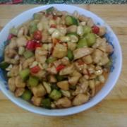 鸡胸肉、黄瓜、花生米、尖椒、姜、蒜、料酒、生粉、盐、糖、鸡精、豆瓣酱。