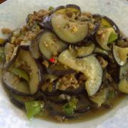 肉末、茄子、盐、鸡精、陈醋、青椒、红椒、大蒜、生姜、豆瓣酱、剁辣椒。