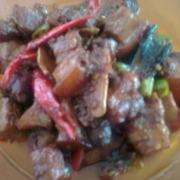 牛腿肉、洋葱、青红椒、生姜、大蒜、生粉、桂皮、生抽、料酒、盐、鸡精、豆瓣酱。