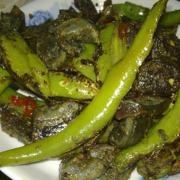 青椒、皮蛋、大蒜仔、盐、鸡精。