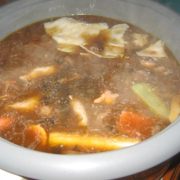 豆腐、肉沫、香菇、生姜、老母鸡浓汤宝。
