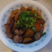小红萝卜、五花肉、香菜、葱、姜、蒜。