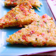 土豆、胡萝卜、火腿肠、鸡蛋、韭菜、米饭、淀粉、盐、鸡精。