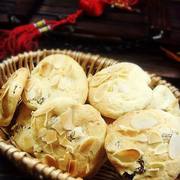 低粉、葡萄干、杏仁、鸡蛋、黄油、泡打、细砂糖。