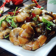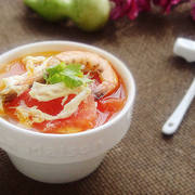 西红柿、鸡蛋、生虾、蒜、香菜、盐、料酒、香油。