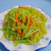 莴笋、胡萝卜、蒜、盐、生抽、鸡粉。