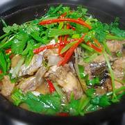 鲩鱼、干辣椒、姜、蒜、香菜、熟白芝麻、料酒、盐、生抽 、胡椒粉、十三香、生粉。