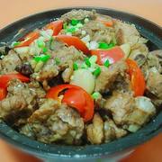 排骨、芋头、红椒、姜、葱、蒜、八角、桂皮、盐、料酒、生抽、胡椒粉、生粉、白糖。