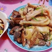 光鸡、红葱头、姜、葱、蒜、沙姜粉、李锦记蒸鱼豉油、麻油。