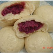 面粉、发酵粉、炼奶、纯牛奶、紫薯。