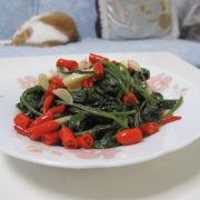 空心菜叶、小米椒、大蒜、香油、米醋、生抽、味精。