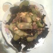 鸡蛋、肉、木耳、黄瓜。