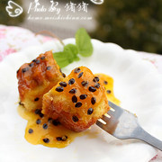 鸡蛋、白糖、低筋面粉、杏仁粉、黄油、百香果、白糖、清水、黄油、白糖、清水。