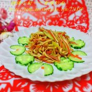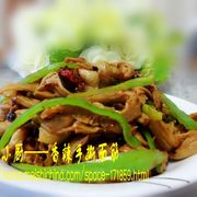 素鸡、蒜末、干红辣椒、花椒、青椒、盐、鸡精、白糖。
