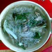 香菇、茶树菇、青菜、瘦肉、蒜头、生姜、米粉、水。