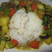 土豆、鸡肉、芹菜、洋葱、鲜蘑菇、咖喱粉。
