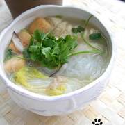 白菜、豆腐皮、姜汁和葱末、料酒、肉馅、胡萝卜和黑木耳、高汤、浓汤宝、排骨汤、百叶结、油豆腐、香菇、娃娃菜、粉丝、香菜梗、白胡椒粉。