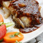 鳕鱼、黑胡椒、葡萄酒、柠檬汁、姜丝、胡萝卜和土豆、黄油、洋葱圈、面粉、酱油、蚝油、白糖、小葱、香醋、生菜、番茄、橄榄油、意大利香草、柠檬汁、盐。