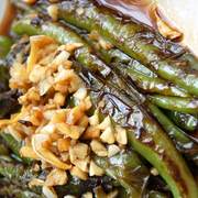 尖椒、酱汁、生抽、醋、白糖、盐、蚝油、蒜末、姜丝、鸡精。