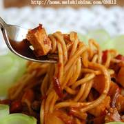 五花肉、料酒、茭白、土豆、胡萝卜、新鲜香菇、豆腐干、花生米、大葱、姜片、八角、香叶、桂皮、花椒、老抽、豆瓣酱、冰糖、手擀面。