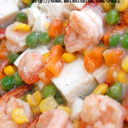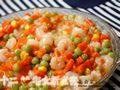 虾仁、胡萝卜、豌豆、盐、料酒。