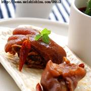 猪手、老豆腐、豆腐干、老抽、桂皮、大葱段、姜片、生抽、花椒、料酒、青胡椒、白胡椒、八角。