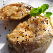 冰鲜黄鱼块、李锦记蒸鱼豉油、盐、色拉油、cook100调料、柠檬汁、朗姆酒、盐、黄油。