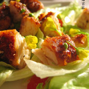 鸡胸肉、生菜、圣女果、橄榄油、黄油、盐、白胡椒粉、辣椒粉、意式沙拉酱。