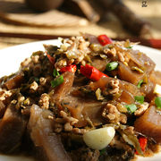 苦槠豆腐、腌雪菜、肉馅、蒜、香葱。