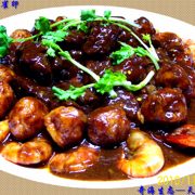 牛肉、大虾、鹌鹑蛋、洋葱、老姜、盐、老抽、料酒 、香醋、白砂糖、五香粉、陈皮、水淀粉、味精、花椒油。